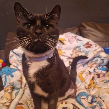 He's missing an eye due to an old injury when he first came in to us but he doesn't miss it. He does have a sensitive stomach so too many treats or changes in food can upset him but he can eat whiskas and felix happily. He does get hairballs but regular brushing hugely helps with this.