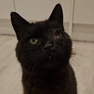 Due to an inoperable facial tumour, he’s too ill to be rehomed and remains in permanent foster care. But he’s happy, loved, and finally safe.